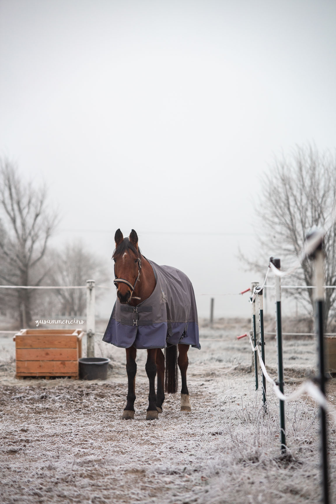 Nach unserem Umzug stand Nala zuerst in einem Offenstall mit andern Ponys zusammen. Im Sommer standen auch hier alle 24/7h auf der Wiese. In der Übergangszeit wurde selbst organisiert wer rein und raus bringt. Im Winter kamen die Pferde ebenfalls für ein paar Stunden auf die Wiese (auch in Selbstorganisation). Es wurde hier in der Gruppe in ab 1h Zeit auf der Wiese angeweidet.